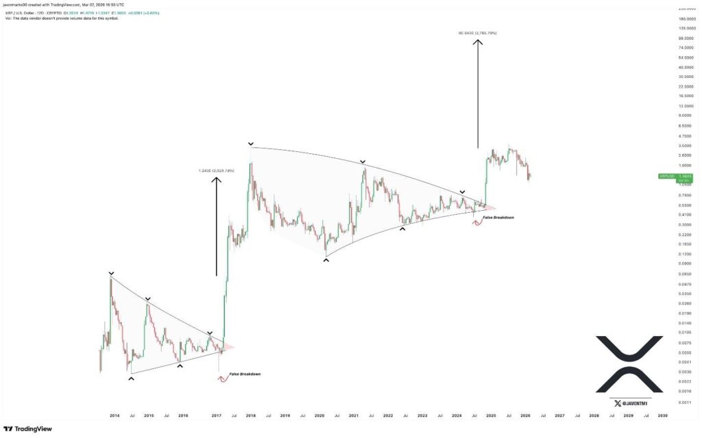 The analyst additionally dismissed the affect of exterior commentators, noting that structural evaluation and chart-based patterns stay extra dependable indicators in predicting XRP’s subsequent strikes.