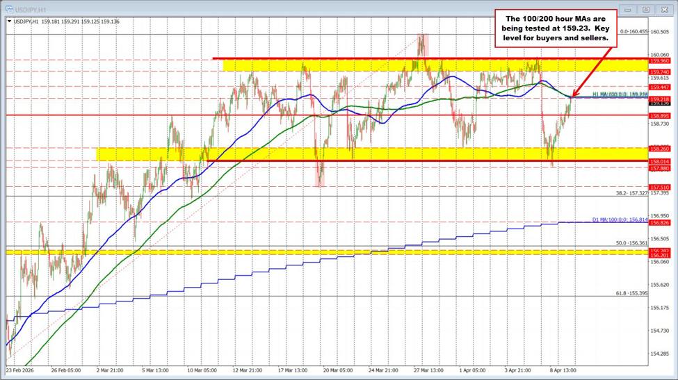 USDJPY trades to new highs and exams the converged 100/200 hour MAs