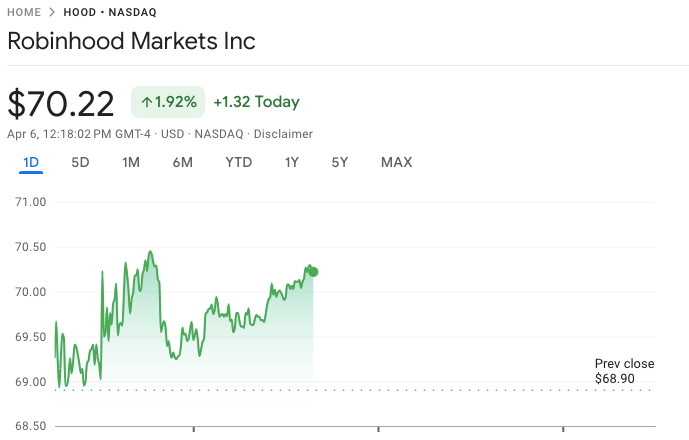 Robinhood shares moved larger following the announcement. The inventory reached $70.22, recording a 1.92% acquire and a rise of $1.32 on the day.
