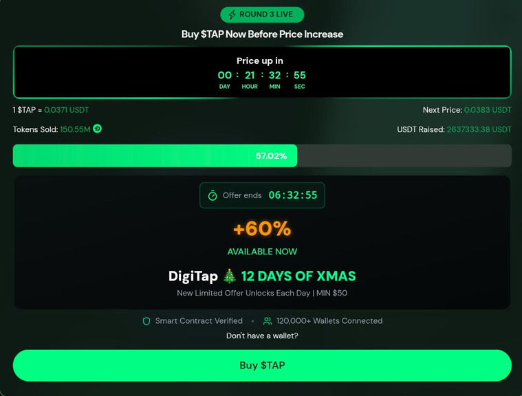 Now, Digitap is making the provide even sweeter with a 12-day Christmas occasion designed to reward early traders and patrons. Over $300,000 in bonuses, prizes, and rotating presents are being launched in levels over 12 days.