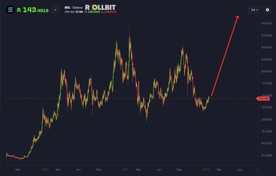 One analyst on X has predicted that Solana’s worth is about to surge to $300 if it breaks out of its present accumulation zone. In his evaluation, he famous that the worth tends to leap every time it drops, testing the help at this zone. Subsequently, if historical past rhymes, it may soar to an all-time excessive of $300.